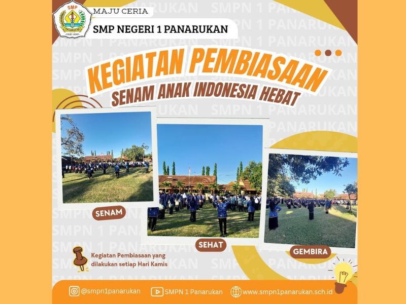 Pada pagi yang cerah, seluruh warga SMP Negeri 1 Panarukan berkumpul di halaman sekolah untuk melaksanakan kegiatan rutin pembiasaan “Senam Anak Indonesia Hebat”. Kegiatan ini diawali dengan pengarahan singkat dari guru olahraga mengenai pentingnya menjaga kesehatan tubuh, kemudian dilanjutkan dengan senam bersama yang diiringi musik riang dan penuh semangat.