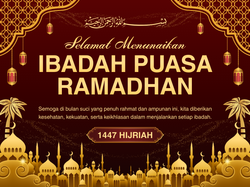Selamat menunaikan ibadah puasa Ramadhan 1447 Hijriah.